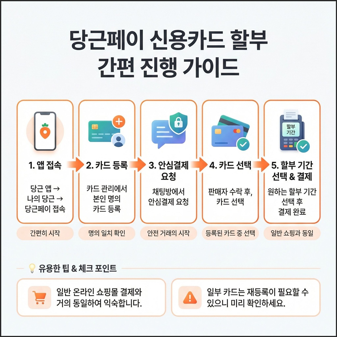 일반 송금 방식으로는 할부 선택이 불가능합니다. 반드시 안심결제를 통해 당근페이 카드결제를 선택해야 합니다.