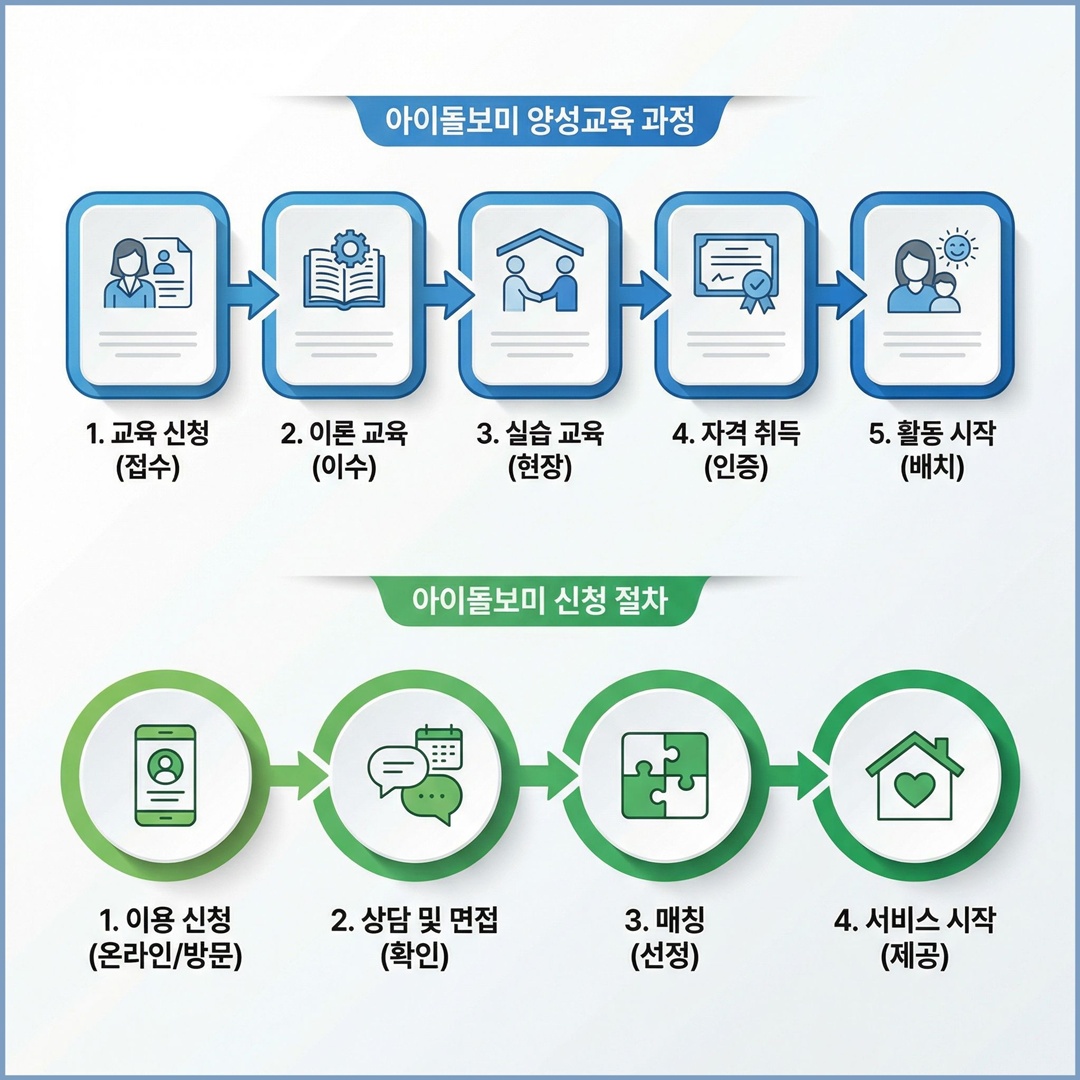 아이돌보미 양성교육은 아동 발달 이해, 안전관리, 응급처치, 놀이 지도 등 실무 중심으로 구성됩니다. 교육 이수 후에는 거주 지역 가족센터 또는 아이돌보미홈페이지를 통해 신청 절차를 진행하게 됩니다.