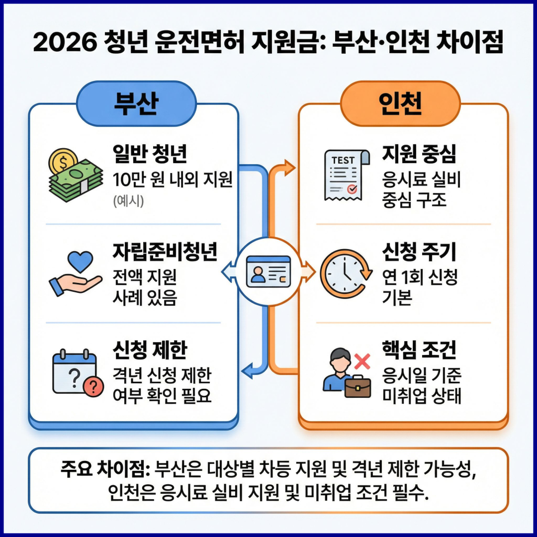 4. 2026 청년 운전면허 지원금 부산·인천 차이점